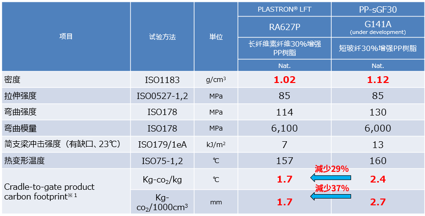 此外,由于其密度比玻璃纤维增强PP树脂低将近10%,因此在相同体积下,温室气体排放量更少。